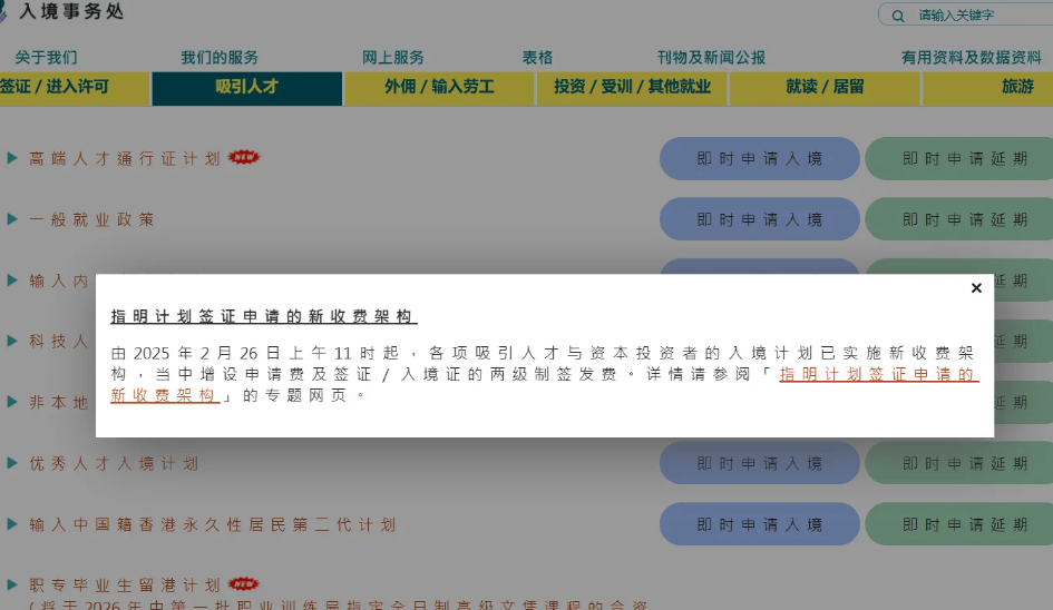 突发消息! 想要申请香港人才签证的朋友们注意了!香港入境处最新宣布,2025年2月26日起,将对所有人才计划签证收取新的申请费用,并大幅上调签证费用!这意味着,未来申请香港人才计划的费用将大大增加,不少人可能会感到措手不及。接下来,我们为大家整理了最新的收费标准和政策变化,帮你快速理清楚这次费用调整的具体内容。